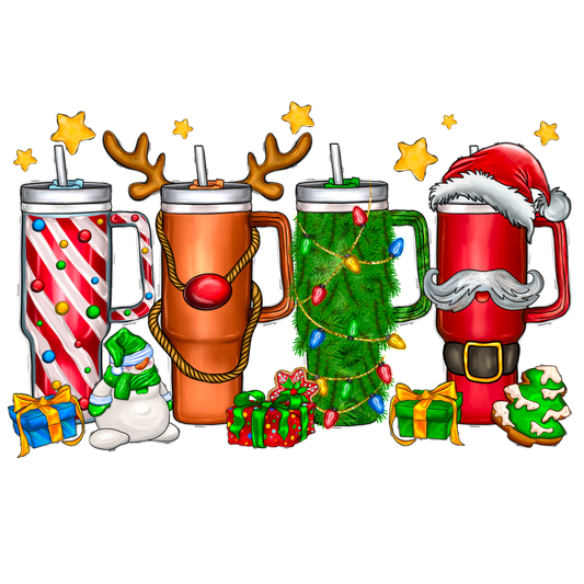Celebrate the holidays with a festive collection of colorful mugs, featuring designs like candy canes, reindeer, and Santa!DTF Transfers dtf transfers
