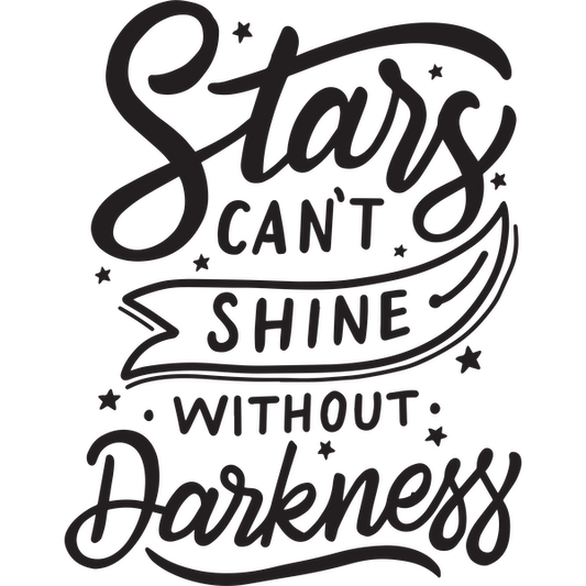 A motivational quote design that says, "Stars can’t shine without darkness," featuring playful typography and star accents.dtf regular iron
