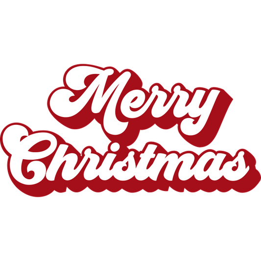Festive "Merry Christmas" text in playful, bold lettering, featuring red and white colors, perfect for holiday celebrations!dtf regular iron