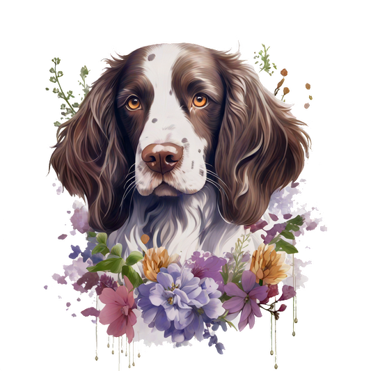 Regular price From £0.75 GBPRegular priceUnit price / per£2.39 GBPSale price From £0.75 GBPA beautifully detailed illustration of a dog surrounded by colorful flowers, showcasing the dog's expressive eyes and soft fur. dtf prints