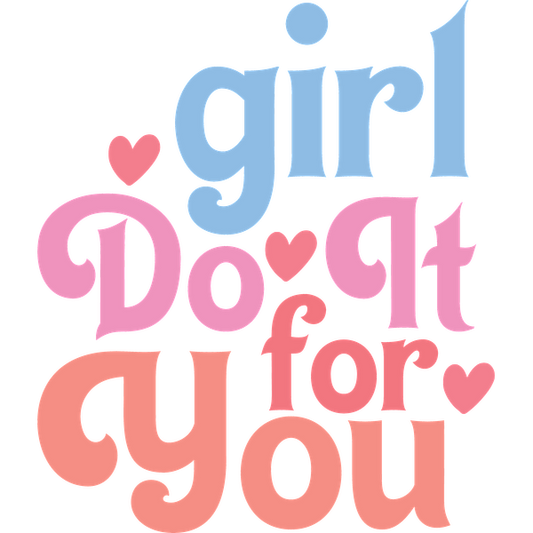 A playful and colorful text design that reads "girl Do It for You," accented with hearts.dtf regular iron