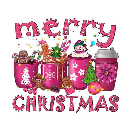 Cheerful Christmas design featuring festive mugs, gingerbread cookies, and playful decorations, perfect for celebrating the holiday spirit!dtf regular iron