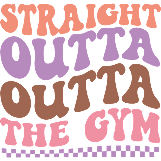 "Playful and bold text design reading 'Straight Outta the Gym' in colorful, retro-inspired fonts." dtf prints