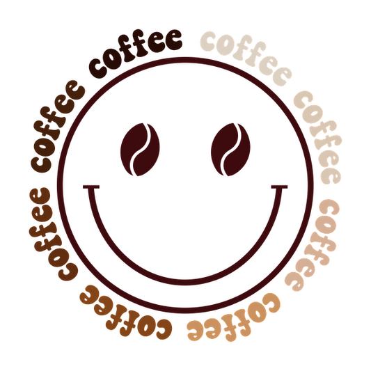 Regular price From £0.75 GBPRegular priceUnit price / per£2.39 GBPSale price From £0.75 GBPA cheerful coffee-themed design featuring a smiling face with coffee beans as eyes, surrounded by the word "coffee."dtf regular iron