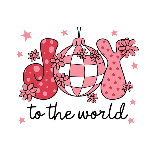 Regular price From £0.75 GBPRegular priceUnit price / per£2.39 GBPSale price From £0.75 GBPA cheerful design featuring a patterned disco ball surrounded by flowers, with the playful text "Joy to the World." heat press transfers