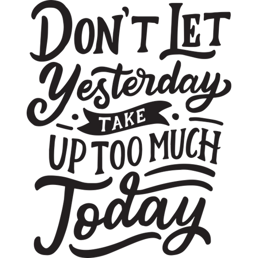 Inspirational quote reminding us not to let yesterday affect our today, beautifully presented in an artistic font. dtf transfers