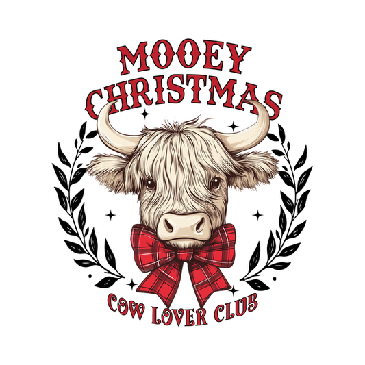 Celebrate the holidays with this fun "Mooey Christmas" design featuring a charming cow wearing a plaid bow tie!dtf regular iron