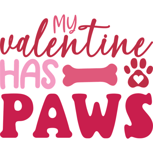 Celebrate Valentine's Day with this playful design that declares "My Valentine Has Paws," featuring cute paw prints and a bone!DTF Transfers