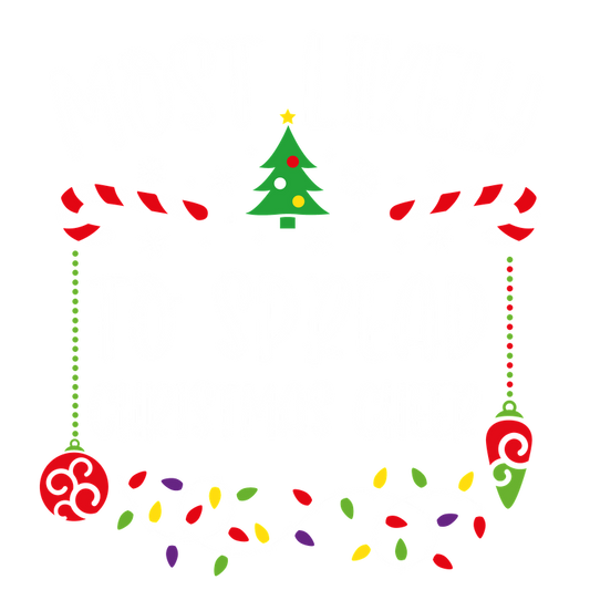 "Celebrate the season with this festive design proclaiming 'Most Likely to Spread Christmas Cheer,' adorned with cheerful decorations!"DTF Transfers dtf transfers dtf prints