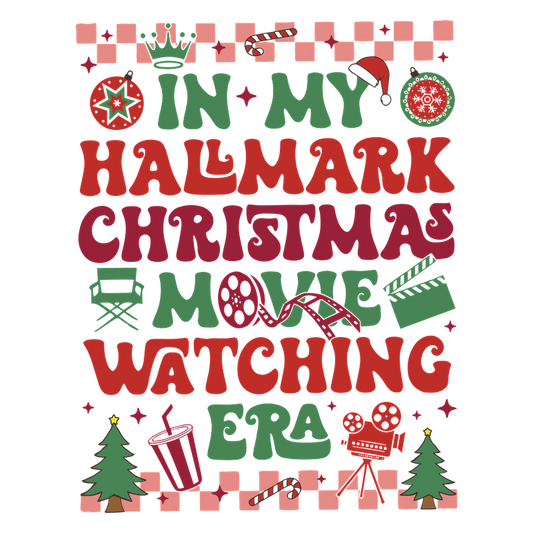 Celebrate the festive season with this colorful graphic proclaiming "In My Hallmark Christmas Movie Watching Era," perfect for holiday cheer!DTF Transfers dtf transfers dtf prints