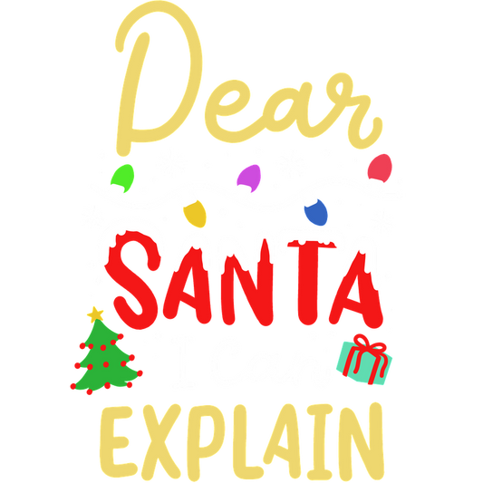 Playful holiday design featuring the text "Dear Santa, I Can Explain," adorned with colorful lights and festive elements.DTF Transfersdtf regular iron dtf prints