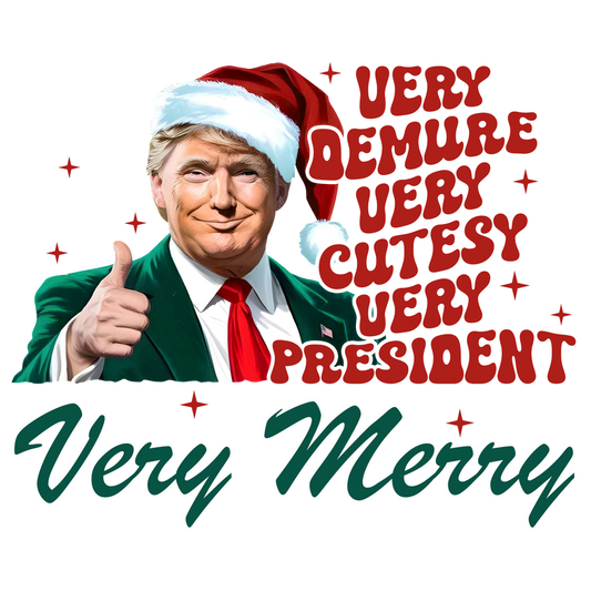A playful holiday-themed graphic featuring a smiling figure in a Santa hat, surrounded by festive text celebrating a "Very Merry" message.DTF Transfers dtf transfers heat press transfers
