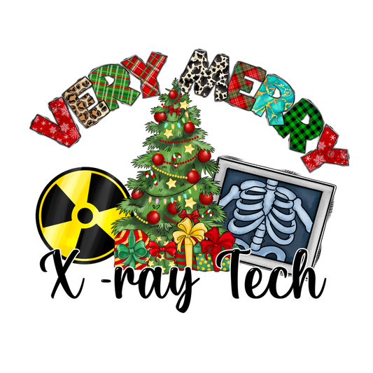 Celebrate the holidays with this festive design featuring a Christmas tree, gifts, and nods to X-ray technology!DTF Transfers dtf transfers heat press transfers