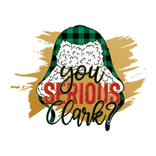 Festive design featuring a plaid bell, fluffy white accents, and the playful phrase, "You Serious, Clark?" for a cheerful holiday vibe.DTF Transfers dtf prints
