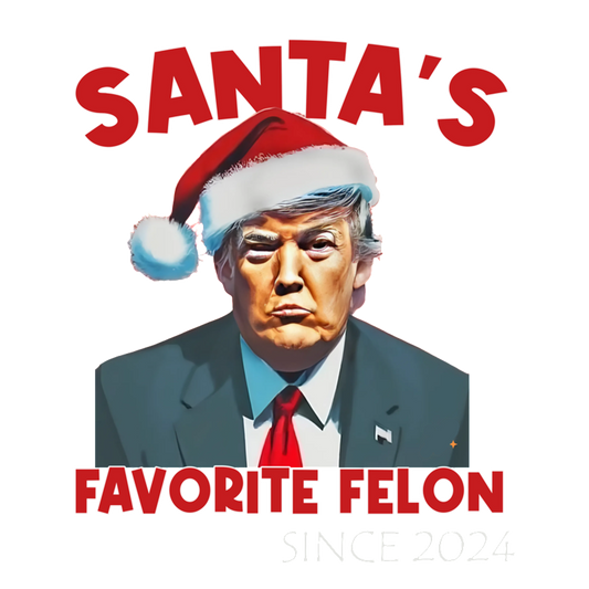 Regular price From £0.75 GBPRegular priceUnit price / per£2.39 GBPSale price From £0.75 GBPA humorous shirt featuring a character in a Santa hat with the slogan "Santa's Favorite Felon Since 2024."DTF Transfers heat press transfers heat press transfers