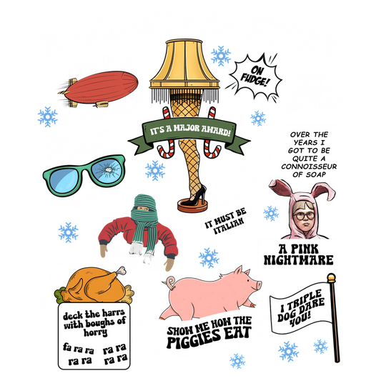 Regular price From £0.75 GBPRegular priceUnit price / per£2.39 GBPSale price From £0.75 GBPCelebrate the holiday spirit with this fun and whimsical “A Christmas Story” graphic featuring memorable quotes and iconic symbols!DTF Transfersdtf regular iron dtf transfers