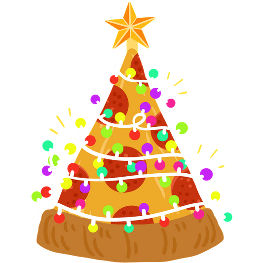 Regular price From £0.75 GBPRegular priceUnit price / per£2.39 GBPSale price From £0.75 GBPA whimsical, cartoon-style Christmas tree made of pizza, adorned with colorful decorations and a shining star on top.DTF Transfers heat press transfers heat press transfers