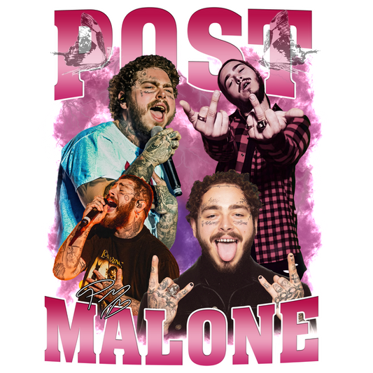 Regular price From £0.75 GBPRegular priceUnit price / per£2.39 GBPSale price From £0.75 GBPA vibrant collage featuring Post Malone, showcasing his signature style and charismatic performances with a bold "Post Malone" text design.DTF Transfers dtf prints