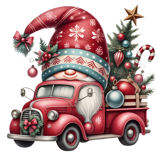 Regular price From £0.75 GBPRegular priceUnit price / per£2.39 GBPSale price From £0.75 GBPA whimsical gnome in a golden hat sits in a vintage white truck, surrounded by gifts and festive decorations.DTF Transfers dtf transfers