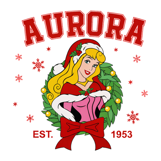 Regular price From £0.75 GBPRegular priceUnit price / per£2.39 GBPSale price From £0.75 GBPA festive design featuring Princess Aurora in a red holiday outfit, surrounded by a wreath and snowflakes, established 1953.DTF Transfersdtf regular iron