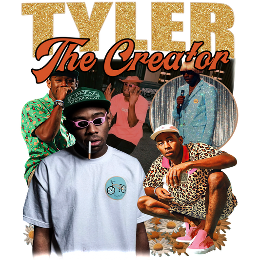 Regular price From £0.75 GBPRegular priceUnit price / per£2.39 GBPSale price From £0.75 GBPA vibrant collage featuring Tyler, The Creator, showcasing his distinctive fashion style and diverse looks across various performances.DTF Transfers heat press transfers