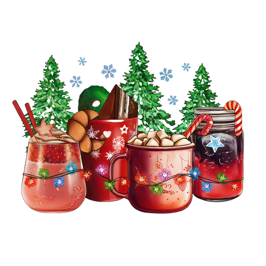 Regular price From £0.75 GBPRegular priceUnit price / per£2.39 GBPSale price From £0.75 GBPA festive collection of colorful holiday drinks featuring marshmallows, candy canes, and decorative elements, surrounded by snowflakes and trees. dtf transfers