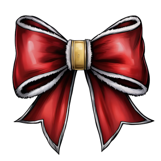 Regular price From £0.75 GBPRegular priceUnit price / per£2.39 GBPSale price From £0.75 GBPA festive red bow with white trim, elegantly cinched with a decorative gold clasp, perfect for holiday decorations.dtf regular iron