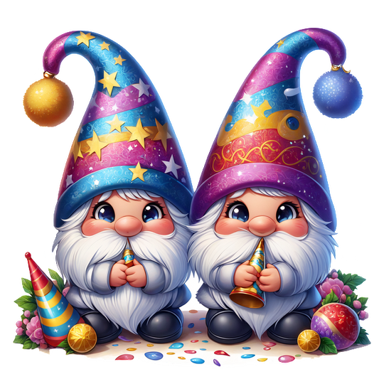 Regular price From £0.75 GBPRegular priceUnit price / per£2.39 GBPSale price From £0.75 GBPAdorable festive gnomes with colorful pointed hats, holding party blowers, surrounded by vibrant decorations and playful ornaments. heat press transfers