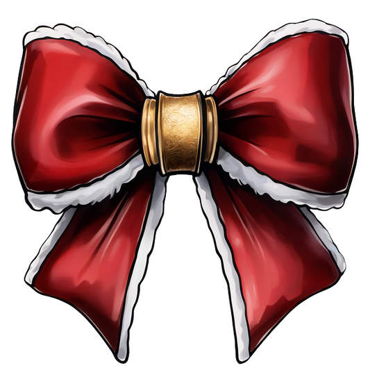 A festive red bow with white trim and a gold center, perfect for holiday decorations or gift wrapping. dtf prints