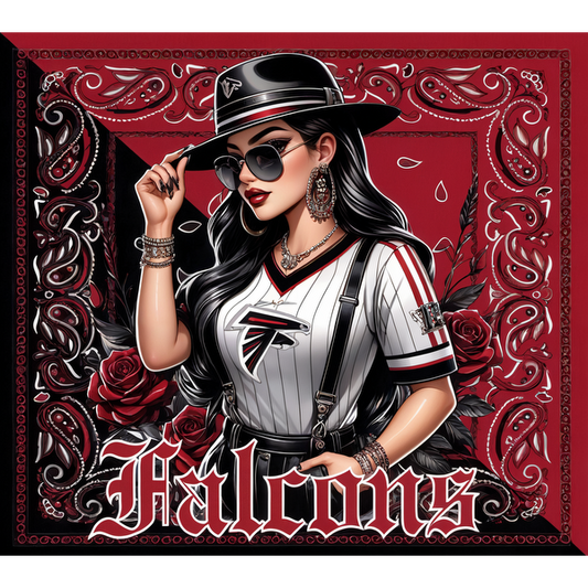 Regular price From £0.75 GBPRegular priceUnit price / per£2.39 GBPSale price From £0.75 GBPA stylish woman in oversized sunglasses poses confidently in a Falcons jersey, adorned with roses and intricate designs. dtf transfers