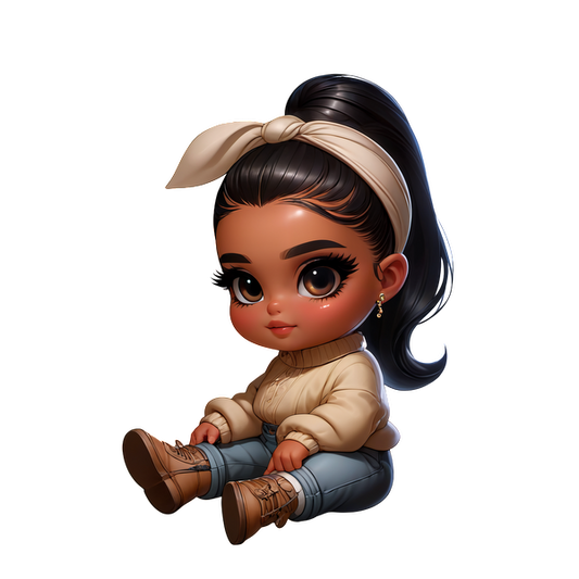 Regular price From £0.75 GBPRegular priceUnit price / per£2.39 GBPSale price From £0.75 GBPA cute cartoon girl with a ponytail, wearing a cozy sweater, jeans, and stylish boots, complete with a headband. dtf transfers