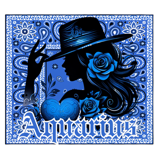 Regular price From £0.75 GBPRegular priceUnit price / per£2.39 GBPSale price From £0.75 GBPA striking blue design featuring a silhouette of a woman in a hat, adorned with roses and the word "Aquarius." dtf transfers