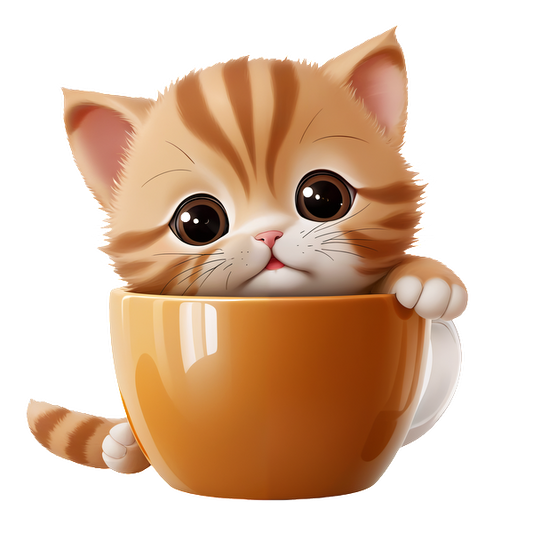 Regular price From £0.75 GBPRegular priceUnit price / per£2.39 GBPSale price From £0.75 GBPA cute cartoon kitten peeks out from an orange cup, showcasing its big eyes and playful demeanor. dtf transfers