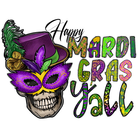 Celebrate Mardi Gras with this vibrant design featuring colorful masks and playful elements, perfect for festive occasions!DTF Transfers