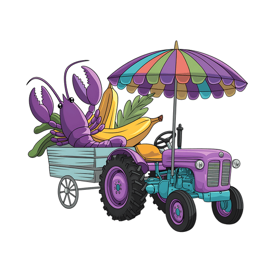 Regular price From £0.75 GBPRegular priceUnit price / per£2.40 GBPSale price From £0.75 GBPA colorful cartoon tractor hauling vibrant fruits and vegetables, topped with an eye-catching striped umbrella for a lively touch.DTF Transfers