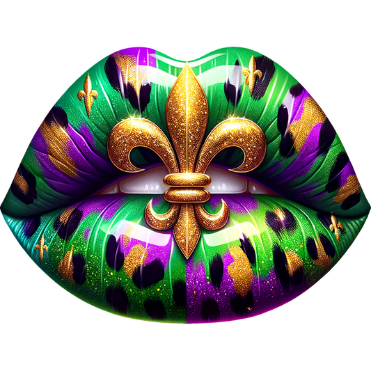 Regular price From £0.75 GBPRegular priceUnit price / per£2.40 GBPSale price From £0.75 GBPVibrantly decorated lips showcase a dazzling Mardi Gras theme with purple, green, and gold colors, adorned by playful designs and glitter.DTF Transfers