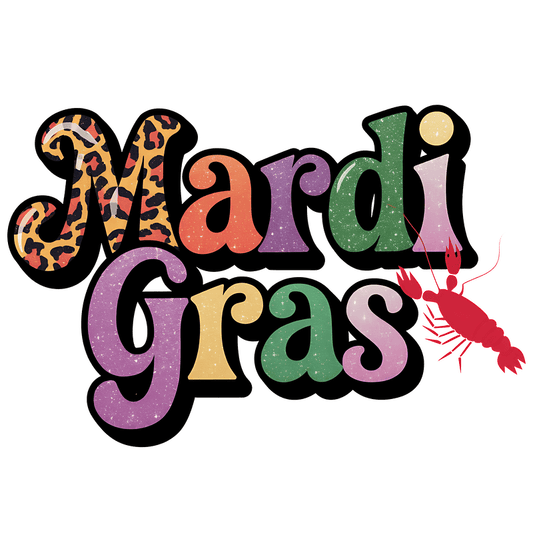 Celebrate Mardi Gras with this colorful and vibrant design featuring bold lettering and a playful lobster illustration!DTF Transfers
