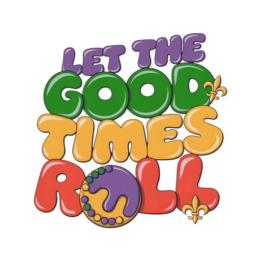A vibrant and festive design featuring playful lettering that says "Let the Good Times Roll," perfect for celebrations!DTF Transfers