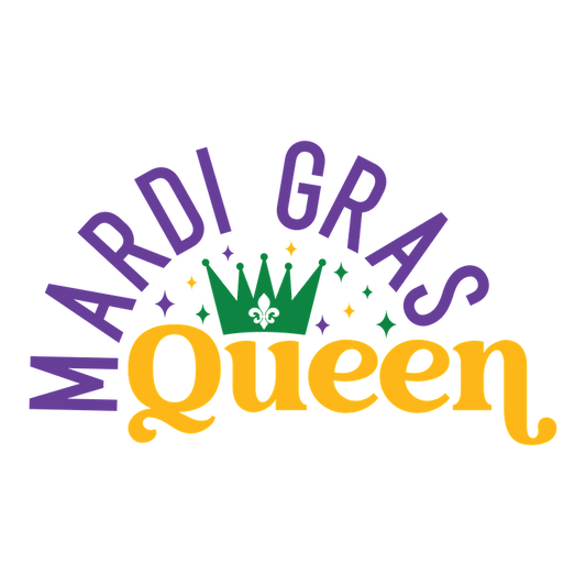 Celebrate Mardi Gras with this vibrant "Mardi Gras Queen" design featuring festive colors and a playful crown illustration!DTF Transfers