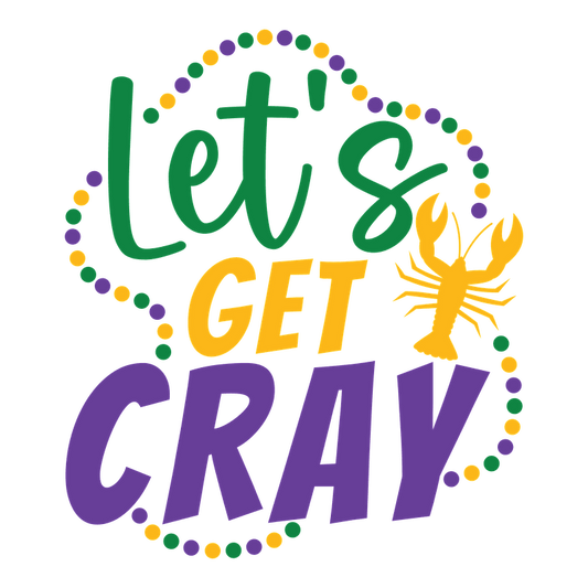 Celebrate the spirit of Louisiana with this vibrant "Let's Get Cray" graphic featuring a fun lobster design and festive colors!DTF Transfers