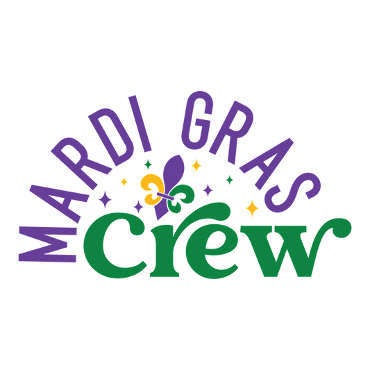 Vibrant "Mardi Gras Crew" graphic featuring colorful lettering and a playful design with festive elements, perfect for celebrations!DTF Transfers