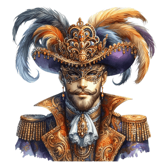 A vibrant and festive masquerade mask adorned with purple and green feathers, perfect for celebrations and masquerade balls.DTF Transfers