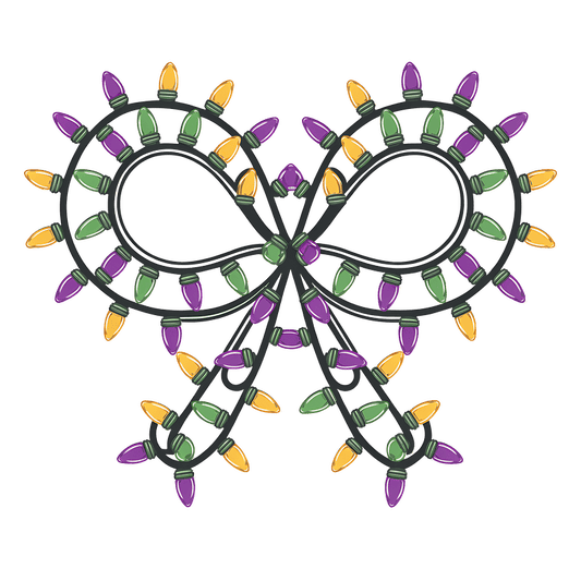 A festive design featuring colorful holiday lights arranged in a playful bow shape, perfect for seasonal decorations.DTF Transfers