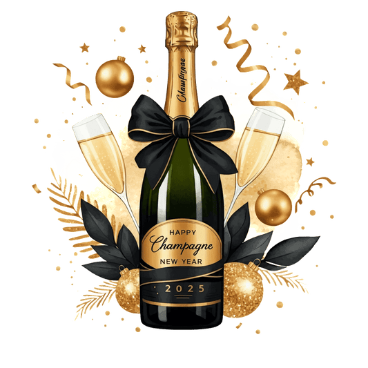 Regular price From £0.75 GBPRegular priceUnit price / per£2.40 GBPSale price From £0.75 GBPCelebrate the New Year with this festive champagne bottle adorned with a bow, elegant flutes, and sparkling decorations!DTF Transfers