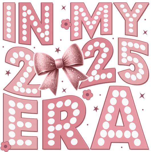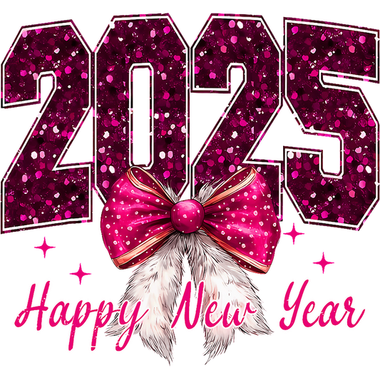 Celebrate the New Year 2025 with this sparkly pink design featuring glittery numbers and a festive bow!DTF Transfers dtf prints