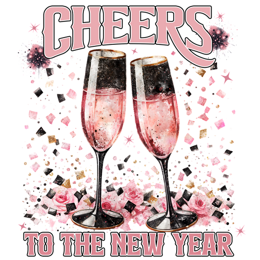 Celebrate the New Year with pink champagne in elegant flutes, surrounded by confetti and roses for a festive touch!DTF Transfers dtf transfers