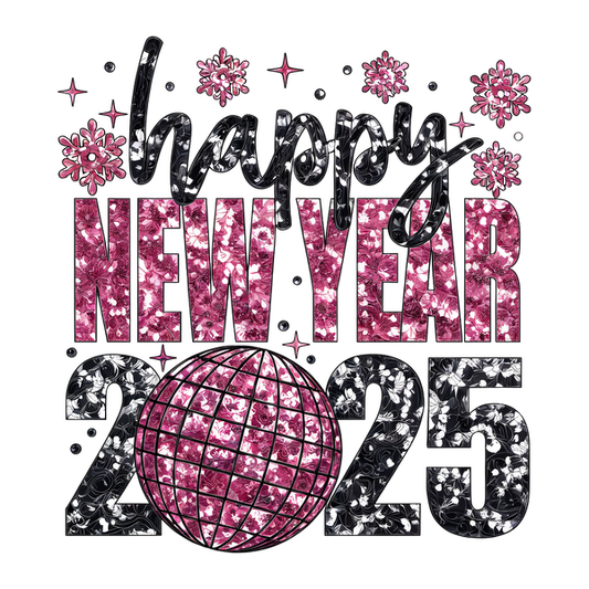 Celebrate the arrival of 2025 with this festive "Happy New Year" design featuring sparkling numbers and a disco ball!DTF Transfers dtf transfers dtf transfers