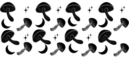 Printed paper with red mushrooms and white flowers.UV Transfers