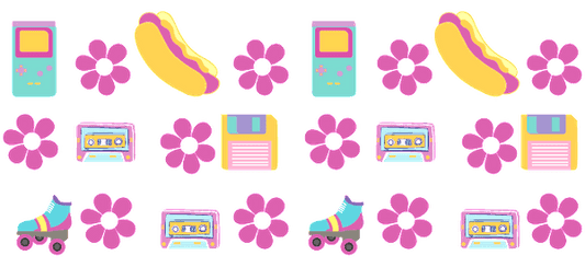 A pattern of pink bows and white star-like accent pieces.UV Transfers