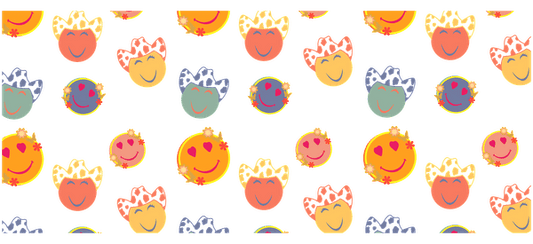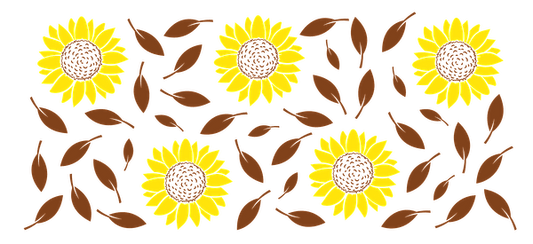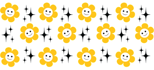 A pattern of yellow face-shaped flowers on a green background.UV Transfers